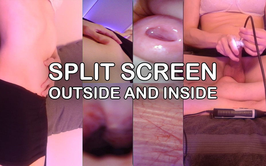 First Time trying Split Screen with the Endoscope in my Dick! My very first experience with split screen cameras: Look inside my Dick while seeing the outside too! In this custom video you can take a close look at my dick from the outside ans inside at the same time! My belly is so full it makes a big bulge. And that's exactly where we will go! Our goal is deep all the way inside my pee hole. So let's go and travel inside together and see what we can find!