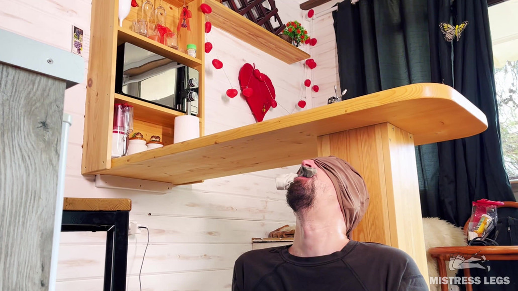 Imagine, that in this foot domination session, you're restrained under the kitchen table, tied to a strong countertop support and gagged with my worn, dirty white socks. I've already prepared a new pair of dirty socks for you, thoroughly soiling them, but I've saved this gift for the finale. One by one, I pull my dirty white socks from your mouth, replacing them with a cruel gag designed to keep your lips parted. Opening your mouth, I expose my bare foot and gently press it directly to your open mouth, preparing for a serious exfoliation with an electric foot file. Watch as I carefully scrub the rough skin from both feet, leaving them smooth and fresh. When I'm finished, I remove the gag from your mouth and, with a graceful movement, lift all my dirty socks from the floor with my foot and push them all back into your mouth, leaving you to enjoy their taste and smell. The perfect scenario for my slave's humiliation, I do it with him regularly