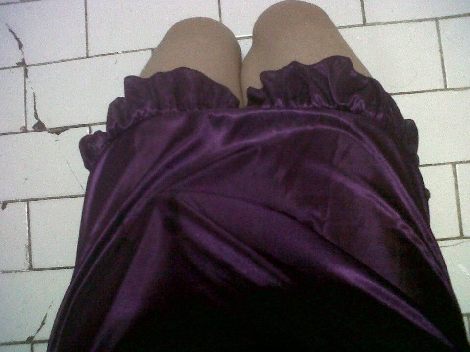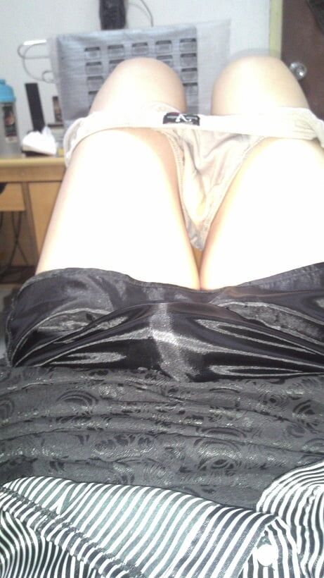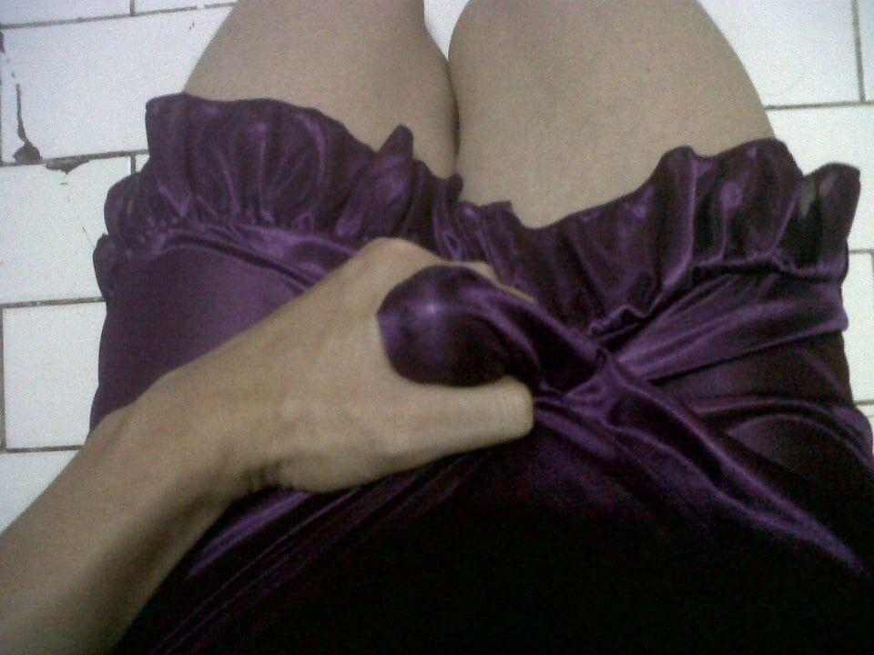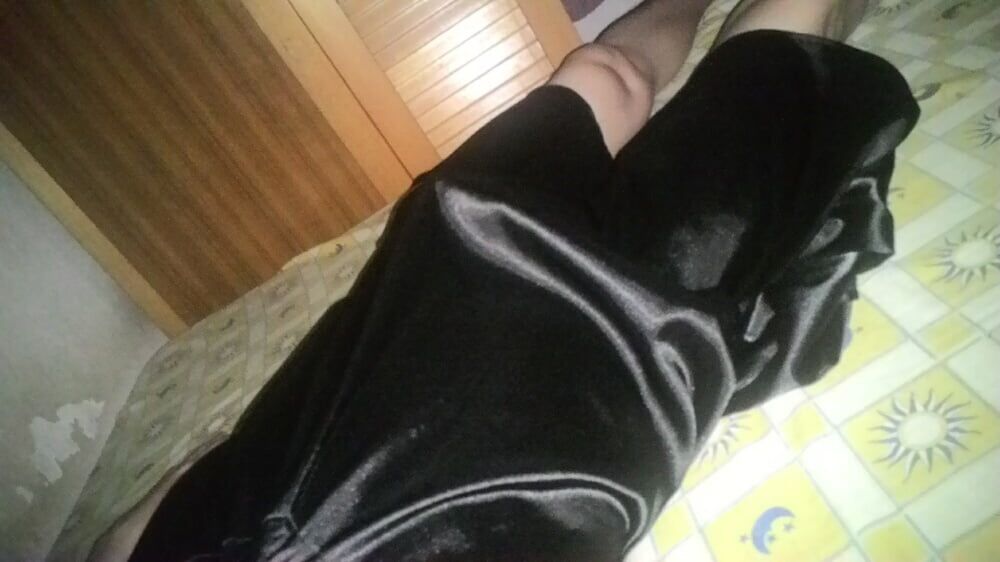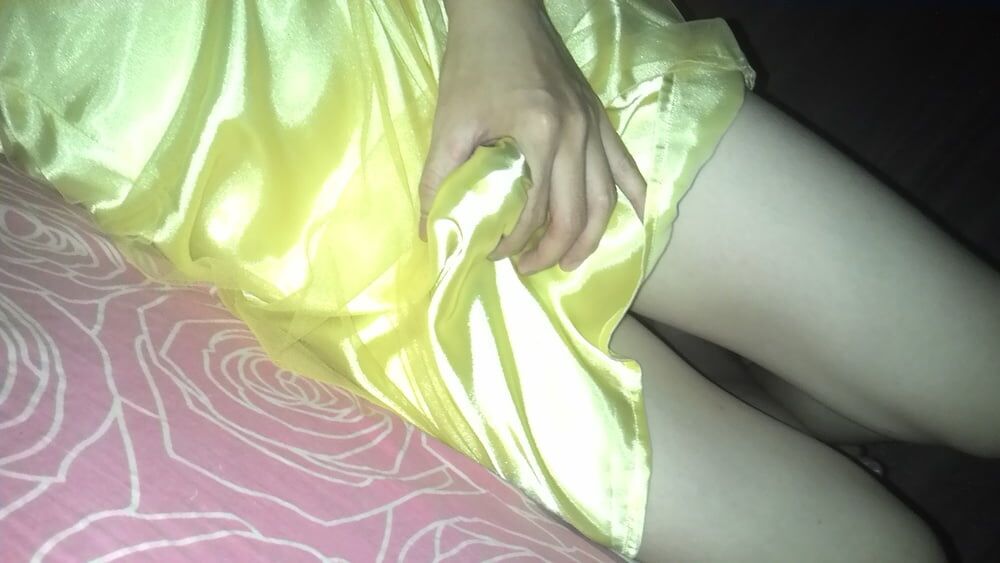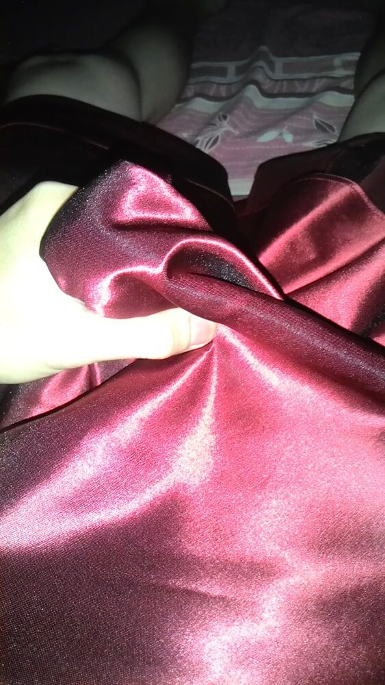 의붓딸의 미끄러운 새틴 드레스의 부드러움과 부드러움을 조용히 느껴