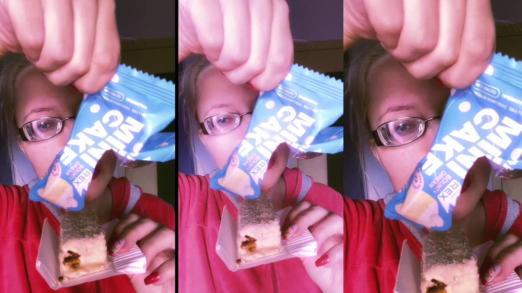 ASMR Red Lipstick and Mini Cake Eating listen in headphones