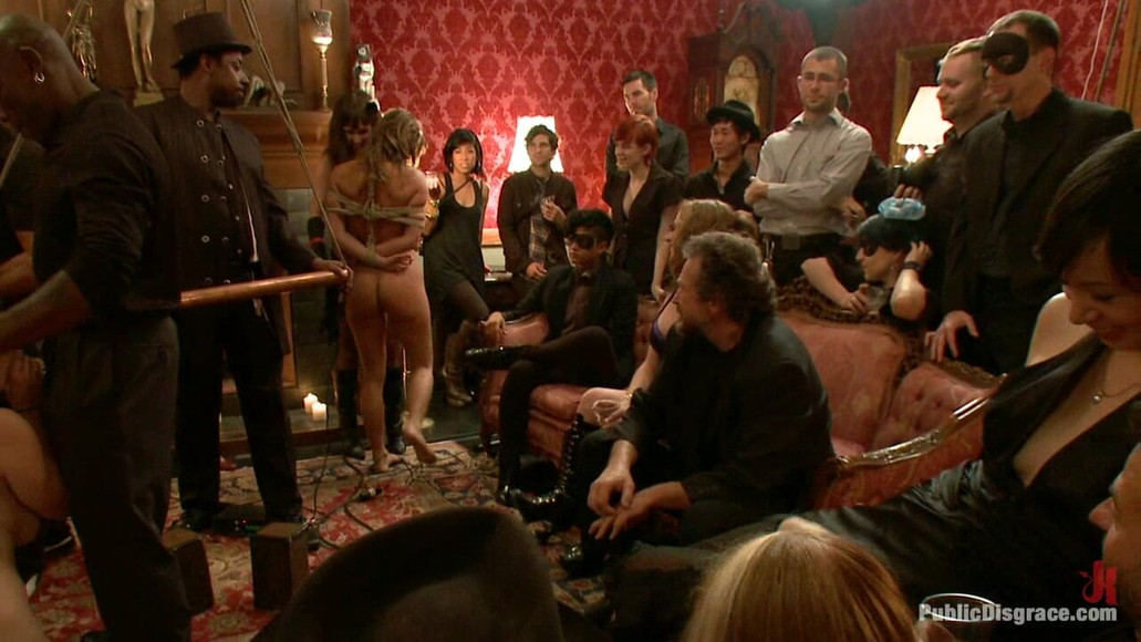 There’s a party on the Upper Floor, and you are invited. Inside Katie Kox gets her big tits bound up tight while she is used to suck and fuck any cock in the room. Ariel X suffers through electrical predicament bondage and the cattle prod to entertain the crowd. Bella Rossi’s whore mouth is put to use, keeping everyone happy, wet, and hard. Big cocks are jammed into tight cunts. Cum inside and join the fun!