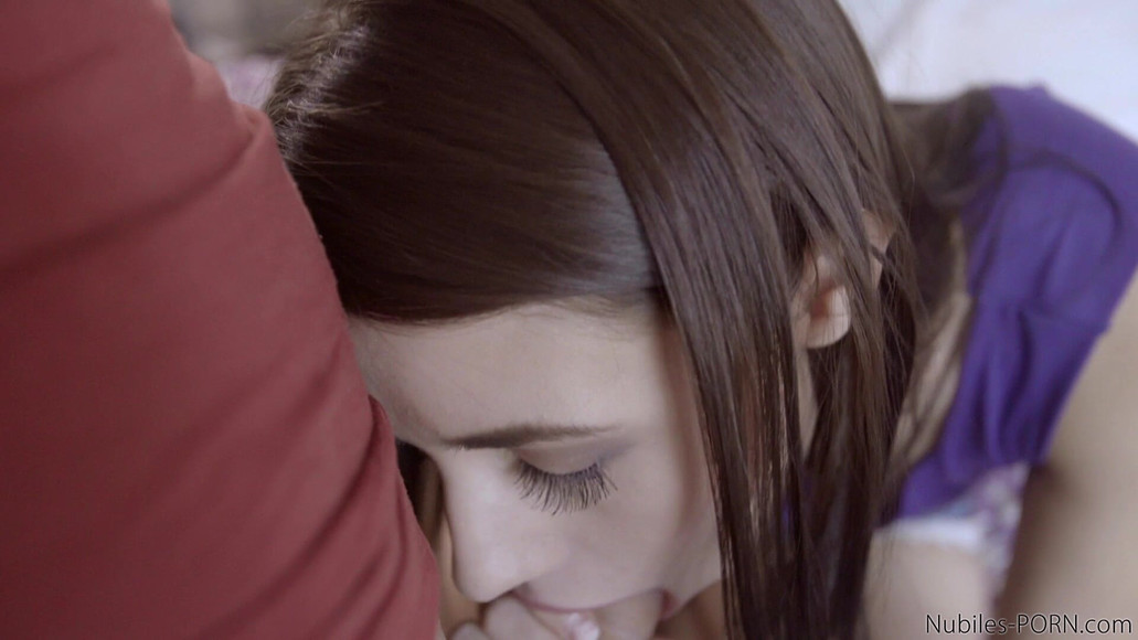 Lucie Cline is having a problem making her boyfriend cum, so she turns to her stepbrother Brad Sterling for advice. Once she admits that she doesn't have the right sex skills, she talks Brad into letting her demonstrate so he can tell her where she's gone wrong. Kicking things off with a soft sweet blowjob, Lucie starts doing whatever she can to bring her stepbrother off. Brad is totally into it by the time Lucie has peeled off her shirt to reveal her tiny titties and rock hard nipples. When she straddles his hardon and slides for a doggy style stiffie ride in her landing strip twat, Brad knows that she's doing something right. He lets Lucie know just how hot she's making him by flipping her onto her hands and knees for a doggy style pussy pounding that leaves her moaning her satisfaction! Turning onto her back, Lucie keeps gasping with pleasure as Brad goes to town on her tight twat. Though Brad tries to pull out when he's ready to blow his load, Lucie begs him to stay buried inside h