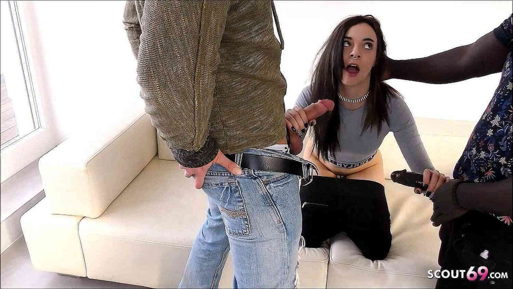 Cute Girl Kady First Rough MMF Threesome Amateur Sex with Big Dick Guy and his Black Friend