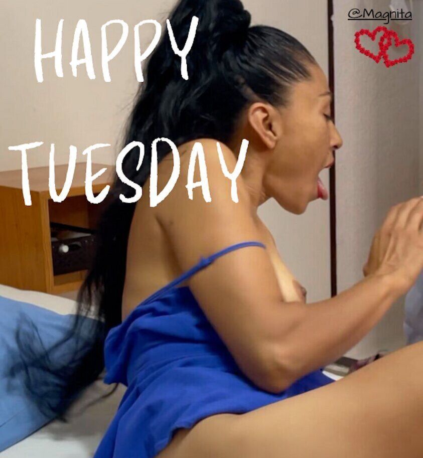 Taster for : We see Magnita, the bride, back from the church, ask you to cream on her face. Then we see her sucking your hard rod until it is ready to offload all over her Latina face. She loves it as always and licks up all she can…..It was exactly what she wanted.