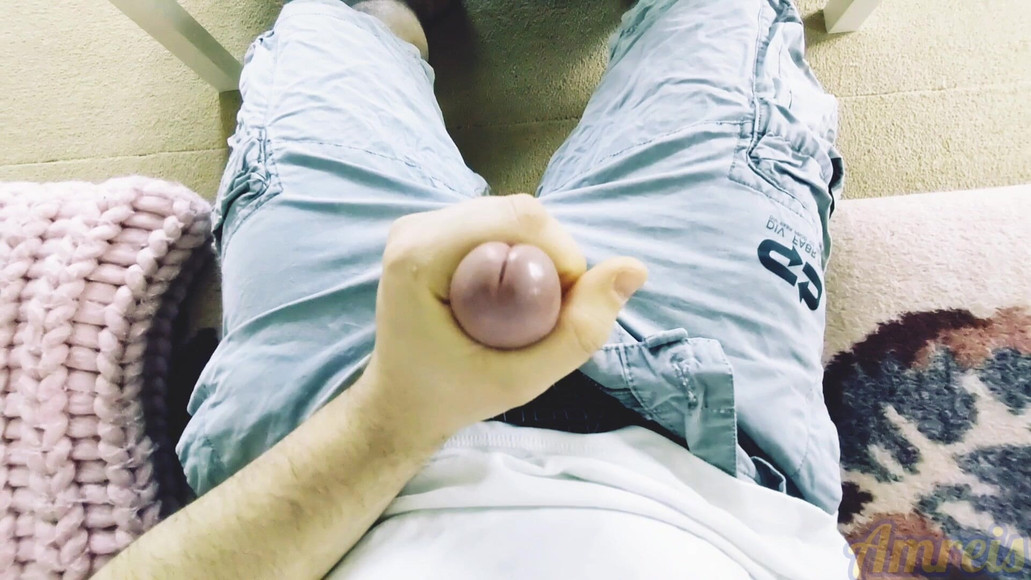 I couldn't stop when I started masturbating the head of my penis while recording the video! As a result - orgasm and a lot of hot sperm on the penis and my hand.