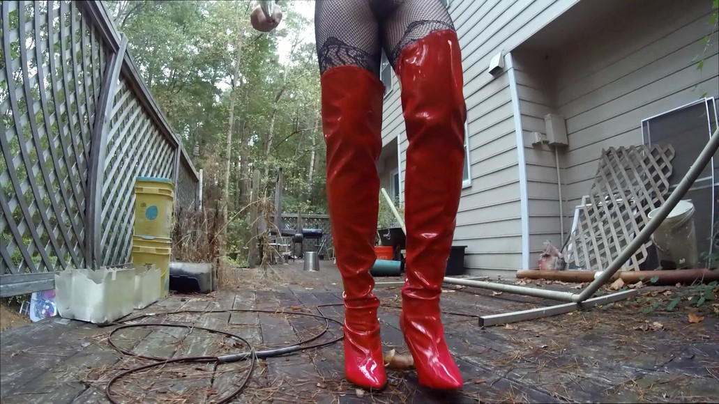 Just Jon Scarecrown in a series of shorter clips walking around outdoors playing with his big fake tits and masturbating his uncut cock until he cums in his fishnet stockings Corsets lingerie bodysuits and more