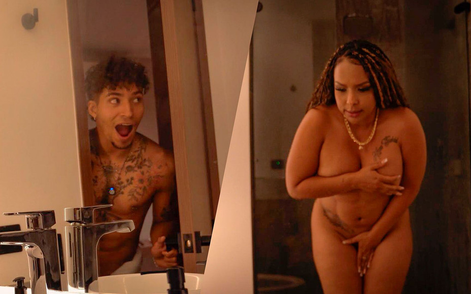 This guy gets naughty with his stepmom, he enters the bathroom while she showers and steals his towel, she chases him all over the house naked and wet, she finally meets him in his room and he is completely naked with his cock so hard that she can't resist fucking him.