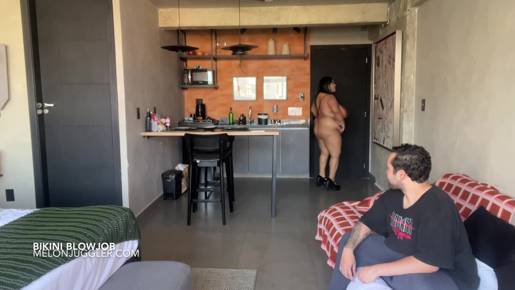Busty Latina BBW Nayara Ledu has been shopping for new swimwear. When she gets home she gives her partner his own personal fashion show as she tries on each outfit. They seem to get smaller and cover less each time and at the same time as they get smaller her partners cock gets harder and bigger. Nayara Ledu takes the pressure off him by giving him a deep sloppy blow job. She is such a slut because as soon as he cums on her massive tits she licks them clean and swallows his load. Nayara is so friendly!!
