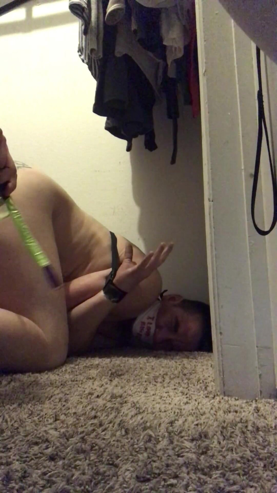 Crying in the corner with clothespins on my ass