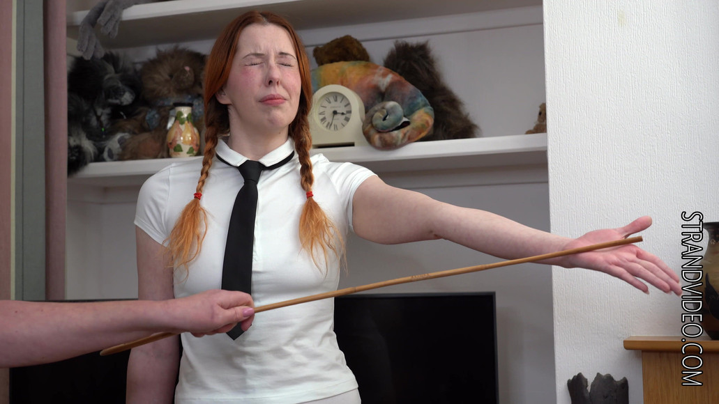 Alora Lux has been caught stealing knickers from a local store and one of the college governors, Mr. Crisp has demanded she be given the most severe punishment for this. She must stand and confess what she has done and she then has to tell everyone what her punishment will be. Dressed in her uniform and then with her skirt removed and her knickers pulled up tight she has to take a most severe and prolonged caning on both hands. This continues despite her tears until the allotted number of strokes have been delivered.