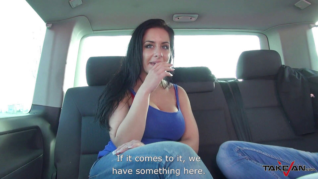 Busty brunette found on the street and convinced to fuck in the car while driving by a stranger. It was her first sex in the car but after she was kicked out of the car with her clothes.